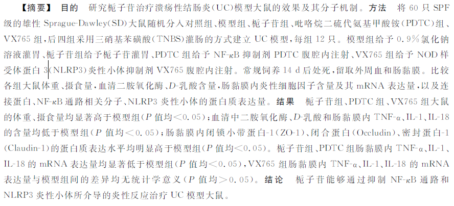 结肠炎,溃疡性;NFκB;炎性小体;栀子苷;NOD样受体蛋白3