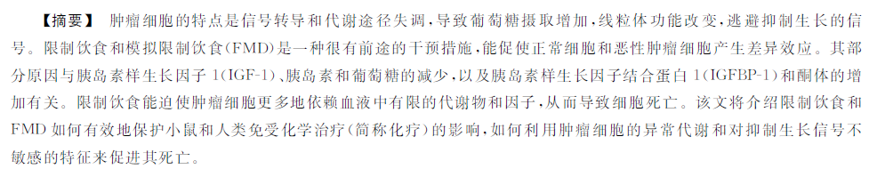 限制饮食;模拟限制饮食;肿瘤预后;应激抵抗