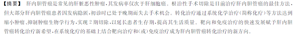 肝内胆管癌;转化治疗;化学治疗;靶向治疗;免疫治疗