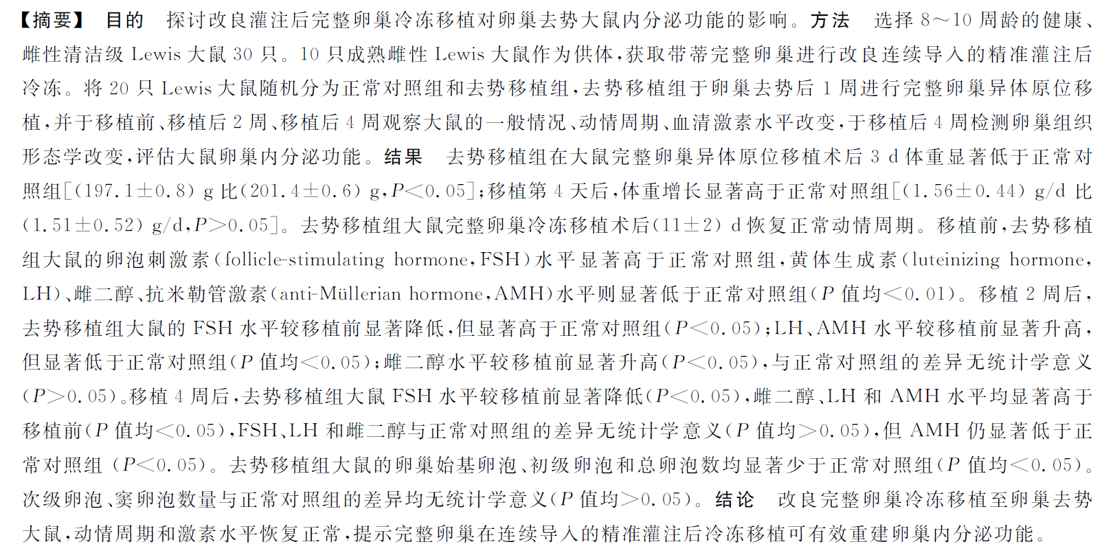【论著】改良完整卵巢冷冻移植对去势大鼠内分泌功能的影响