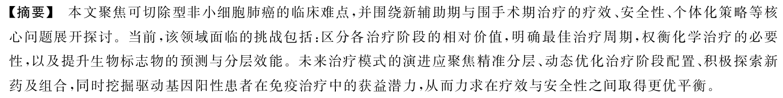 可切除型非小细胞肺癌;免疫治疗;新辅助治疗;围手术期治疗