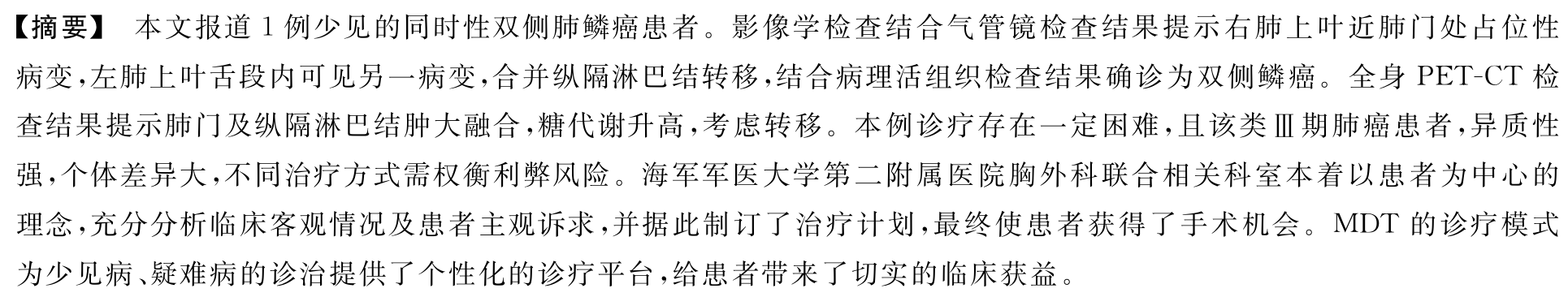 双侧肺鳞癌;多学科诊疗;同时性;局部晚期肺癌