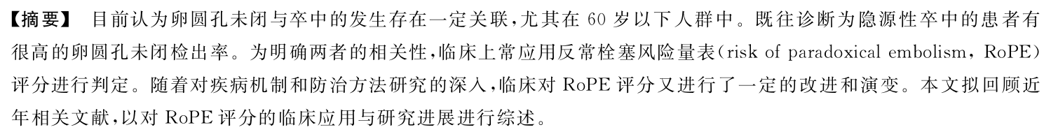 【综述】反常栓塞风险量表与卵圆孔未闭相关卒中的研究进展