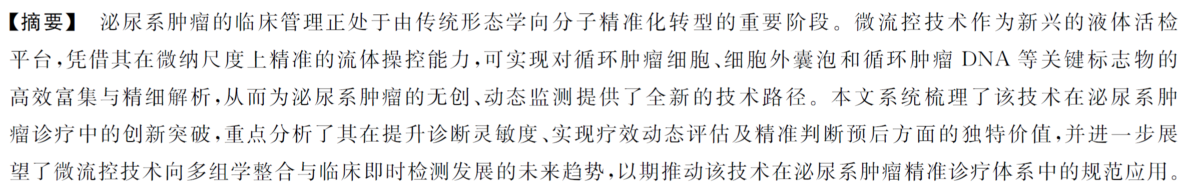 泌尿系肿瘤;液体活组织检查;微流控技术;肿瘤标志物;精准医疗
