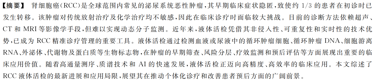【综述·泌尿外科】肾细胞癌液体活检研究进展