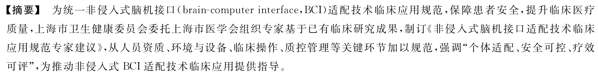 上海市医学会物理医学与康复学专科分会 上海市医学会神经内科专科分会 上海市医学会脑电图与临床神经生理学专科分会 《非侵入式脑机接口适配技术临床应用规范专家建议》工作组
