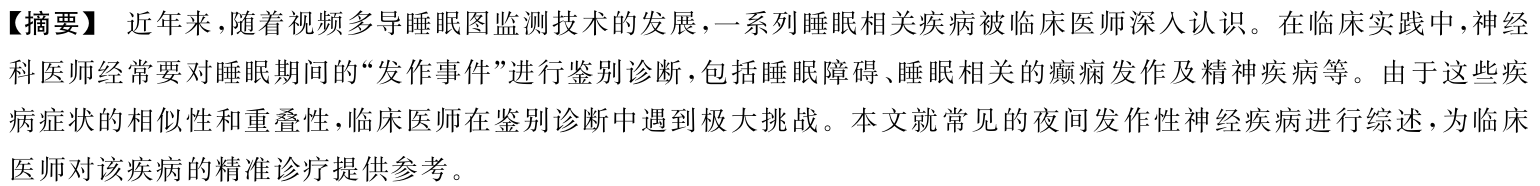 【综述·神经内科】夜间发作性神经系统疾病的诊疗进展